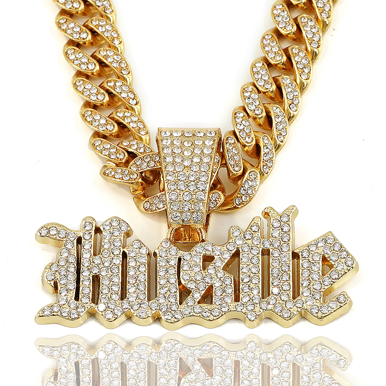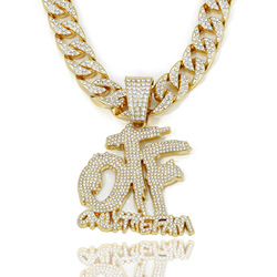 قلادة رجالية عصرية أمريكية وأوربية ماسية بالكامل OTF English تصميم هيب هوب هندسي راقي مطلية بالذهب